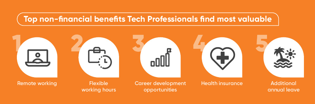For example, our mid-year IT Job Market Report – Update for Employers found that career development ranked as number three in our list of top non-financial benefits which Tech Professionals deem most valuable. By offering clear career pathways, you’re more likely to keep your talent engaged, motivated, and IN your business.